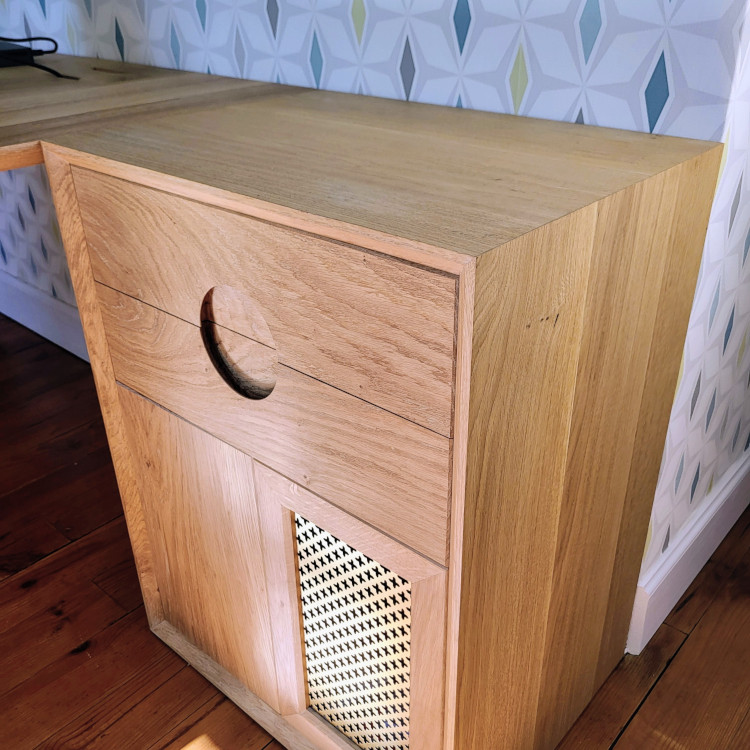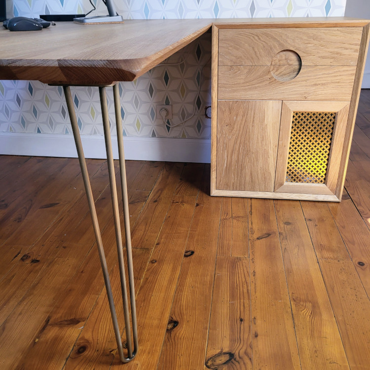 Chaque bureau est conçu et fabriqué dans mon atelier, selon des techniques d’ébénisterie traditionnelles. L’assemblage précis et le travail méticuleux du bois témoignent d’un savoir-faire artisanal authentique, garantissant un meuble unique et intemporel.