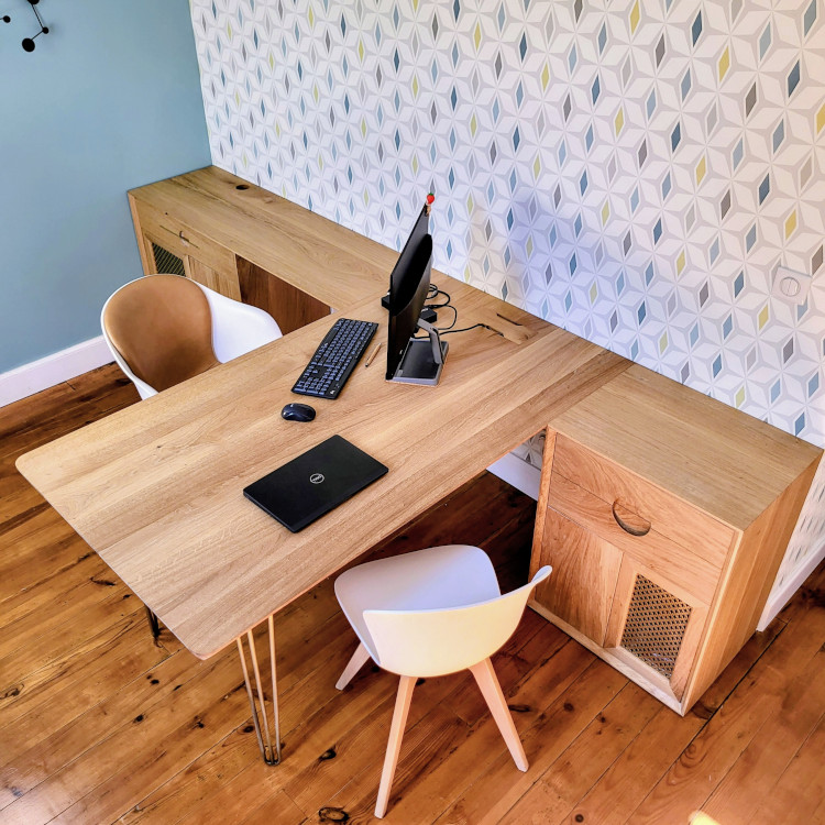 Conçu pour répondre aux exigences du télétravail moderne à deux, ce grand bureau contemporain allie fonctionnalité et design, avec l’élégance scandinave et l’intemporalité du chêne. Son design épuré s’intègre harmonieusement dans tout intérieur, qu’il soit moderne ou inspiré du style rétro. Il a été pensé pour offrir une expérience de travail fluide et ergonomique, tout en valorisant l’esthétique et le savoir-faire artisanal.